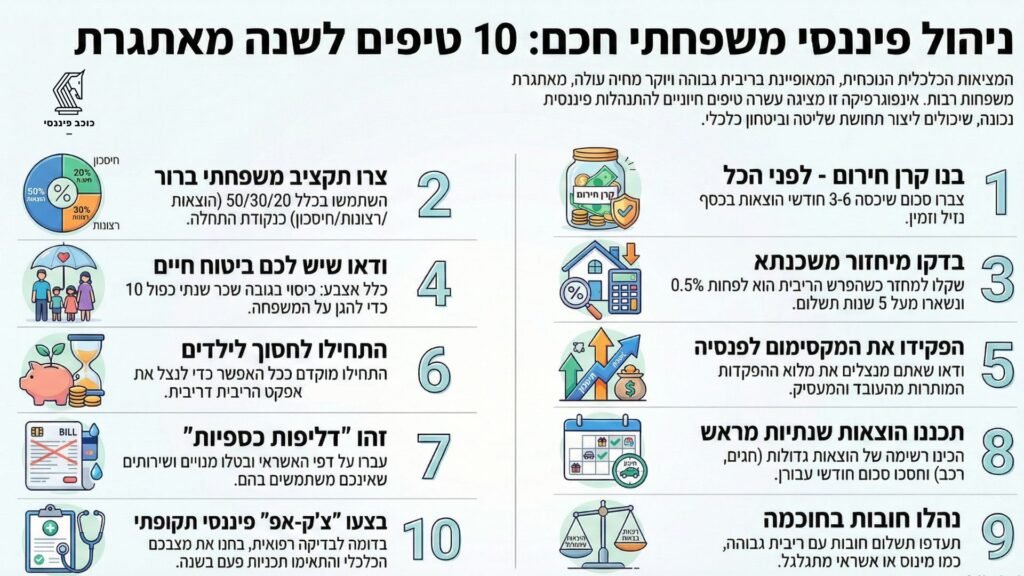 מיכל ודן הם לא לבד. רבים ממשפחות מעמד הביניים בישראל מרגישים שהקרקע נעה מתחת לרגליהם. המצב הביטחוני, הריבית הגבוהה שהגיעה ל-4.25% (אחרי שנה וחצי על 4.5%), והעלייה המתמשכת ביוקר המחיה – כל אלה יוצרים מציאות כלכלית מורכבת שדורשת התנהלות פיננסית חכמה יותר.